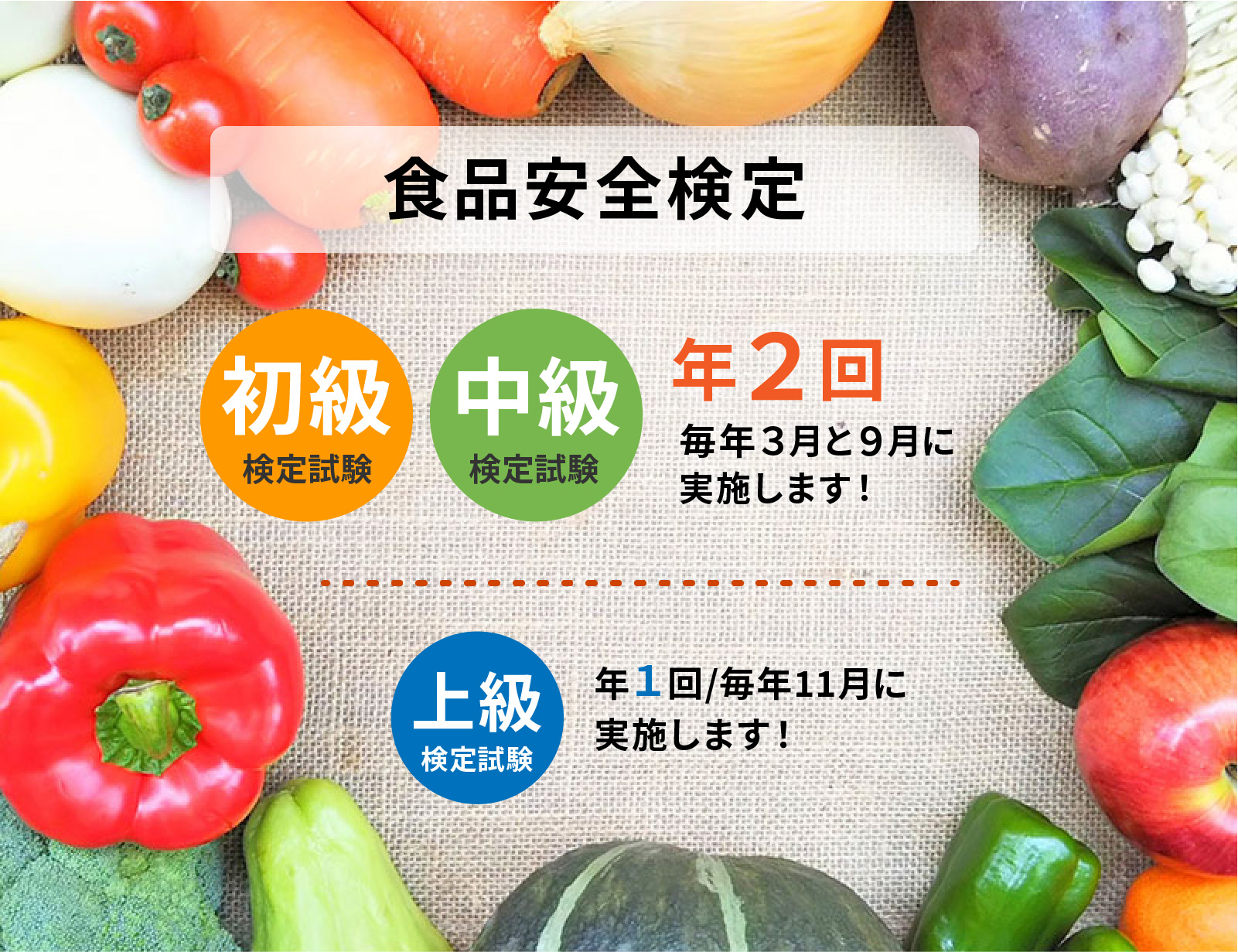 食品安全検定対策講座(動画)や模擬試験問題(初級・中級)で事前に学習することができます。